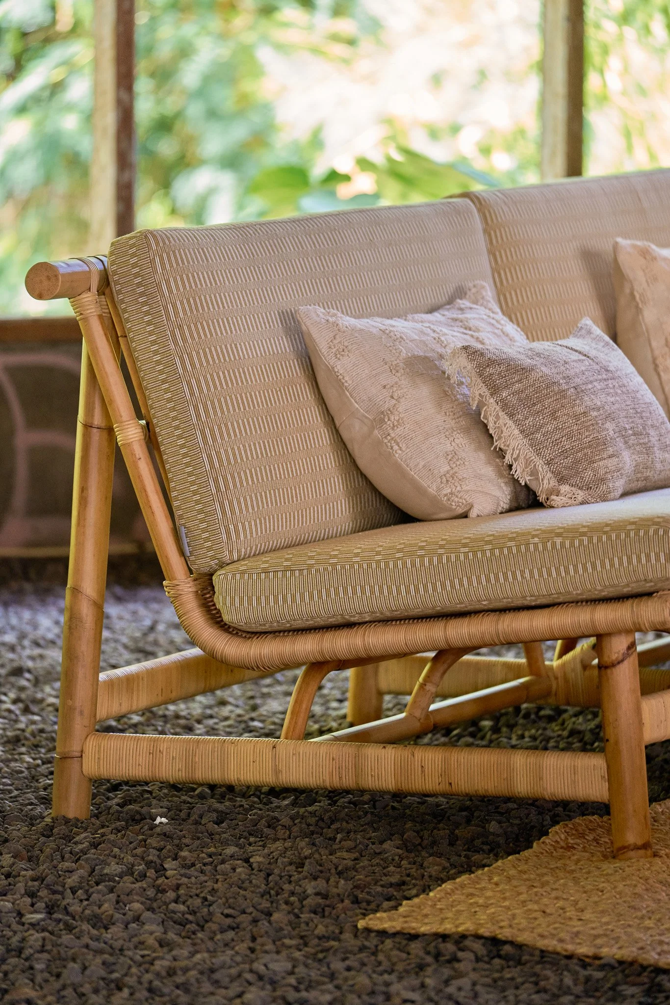The collection is crafted from 6cm Manau Rattan poles, an uncommon scale in modern furniture. The generous diameter gives each piece a strong stance and structure, highlighting the natural character of Manau. Offered in two finishes, it accommodates different moods: natural finish for warmth and groundedness, while charcoal finish provides a refined, modern expression.